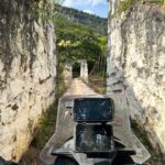 – Sigue el avance por una antigua vía férrea olvidada en el tiempo, con puentes y túneles cubiertos de barro.